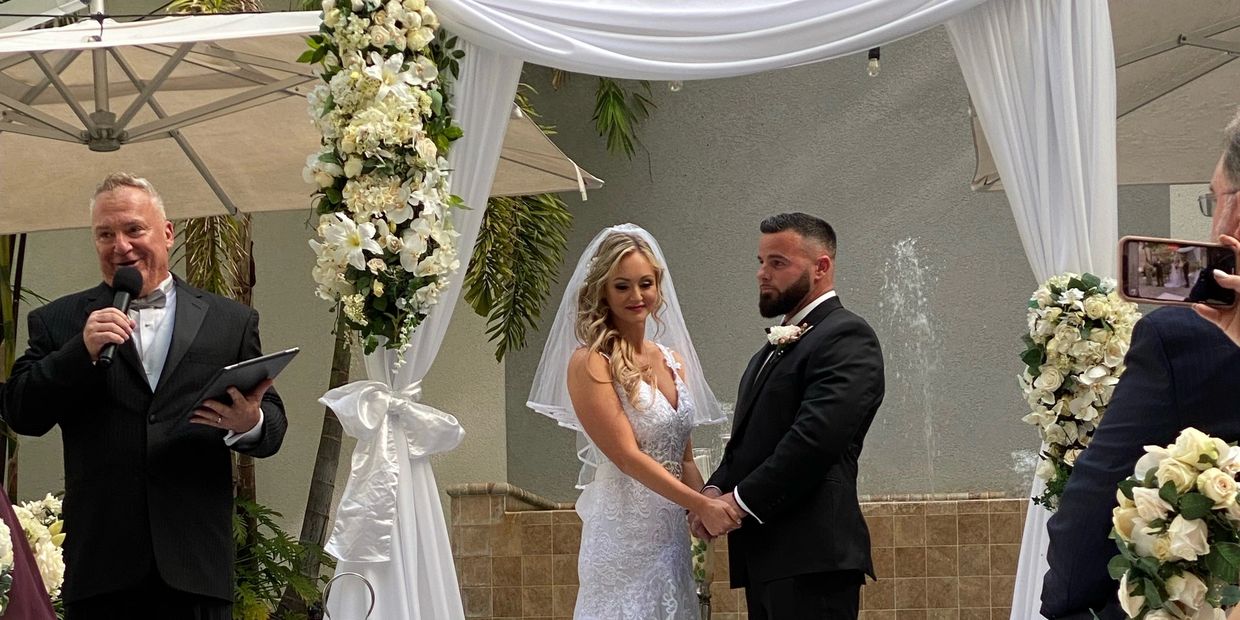 Includes; Officiant with Sound system, music and mic, silk florals, up to 40 chairs included, etc....